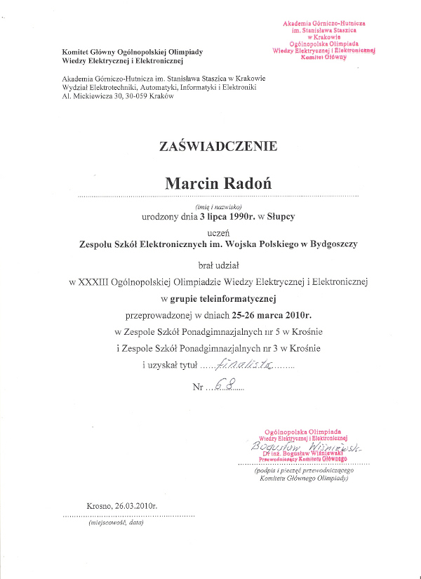 Teilnahme an landesweiter Olympiade "Kenntnisse im elektrischen und elektronischen Bereich"