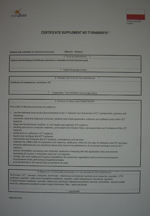 CERTIFIKATE OF COMPETENCES, TECHNICIAN, ICT