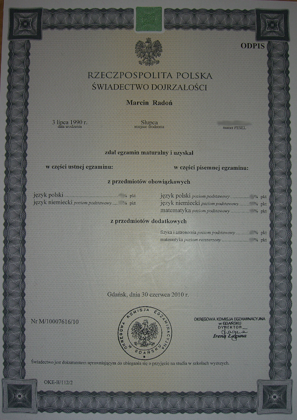 siebten Platz in Polen / Veröffentlichung Prüfung Ausbildung